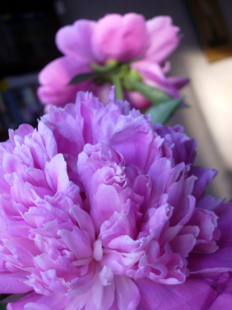 Три наистина невероятни и богати божура красят бюрото ми.